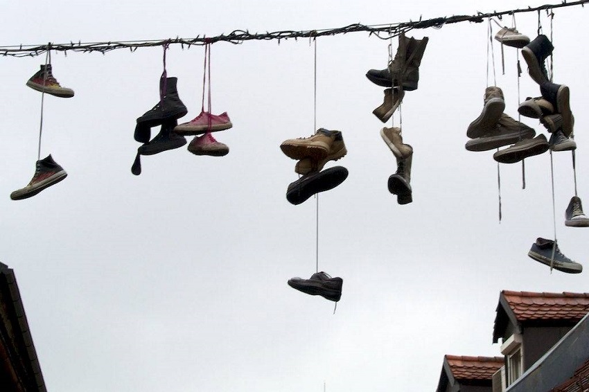 ある日、街の至る所の電線にスニーカーがぶら下がっていることに気づいた編集部スタッフのサエが、この謎めいた風習の実態に迫ります。ドラッグ取引の形跡なのか、はたまたアートなのか……。