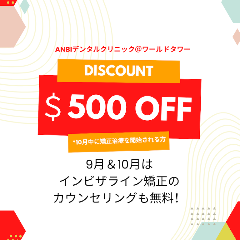 インビザライン矯正治療のカウンセリングを無料で受けられて、10月末までの矯正スタートで治療費が500ドルオフに!