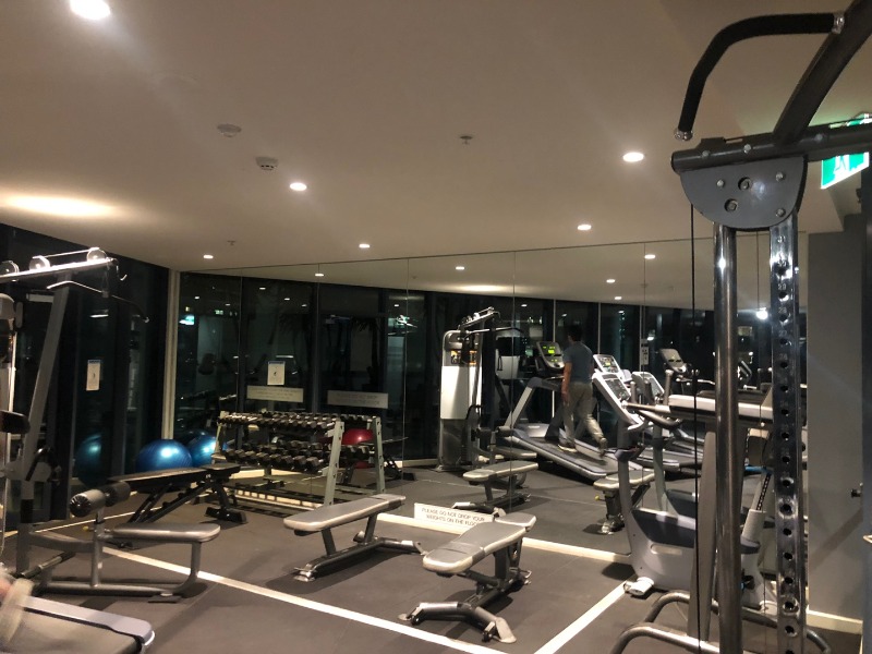 朝6時~夜11時まで利用可能なプールとジム、予約制のBBQ施設