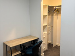 各部屋にはベッド、机、イス、鏡、クローゼット、寝具とう全て揃っております。