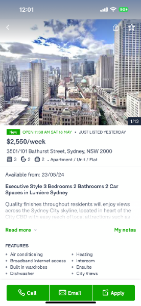 【入居者募集】☆シドニー中心地 Sydney City Town Hall 高級アパート Lumiere Apartment☆