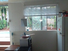 母屋のお庭にたっているグラニーフラットで、とても静かで安全な環境です。 お部屋の前がプールです。