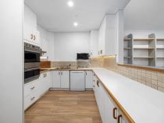 This apartment with wide open plan living areas, high ceilings and full length floor to ceiling windows offers more living space than almost all other apartments in the complex.