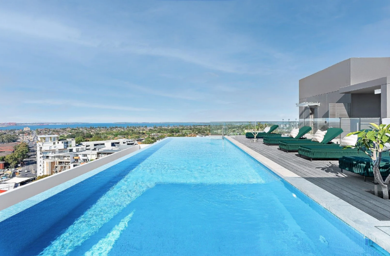 空港の景色を屋上から望むラグジュアリーアパ-トはシドニーCBDから電車で20分に位置しています. 屋上の屋外プ-ルとバーベキューエリアを提供するこの高級なアパ-トは,コグラ(Kogarah)駅からわずか500mです. セキュリティもバッチリなアパートです。シドニー空港からも近く、屋上のプールから飛行機の行き来を眺めたりもできます。夜景も綺麗です。