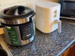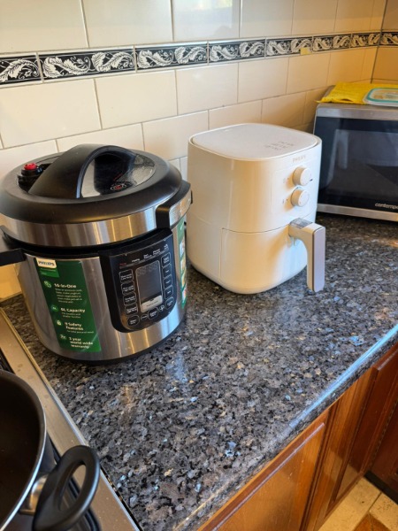 キッチンはとても広々として使いやすいです+電動プレッシャークッカー、エアフライヤーご使用いただけます!