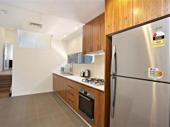 The apartment features an open plan living and modern furnishings. The bedroom is comfortable, with a queen-size bed and an en-suite bathroom. The apartment also comes with a fully equipped kitchen, perfect for whipping up a delicious meal after a long day at work or exploring the city.