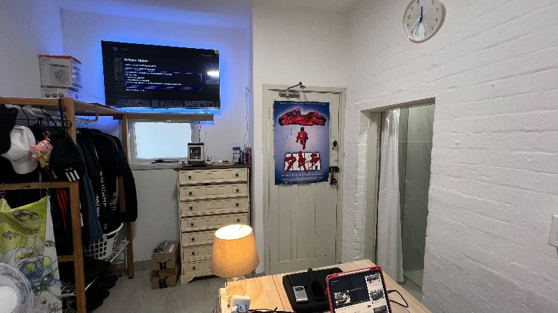 【リビング】テレビあり机あり椅子ありYouTube やNetflix等対応 扇風機と小型エアコン 暖房器具もあるので色々対応可能 掃除機も買いました。
