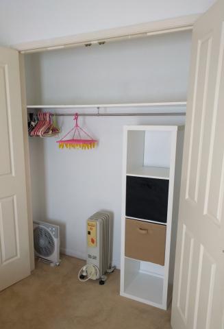 - 部屋は3mx3mほどの大きさで、クローゼット、ベットベース(シングル)、マットレス、机、イス、扇風機&オイルヒーター付きです。
