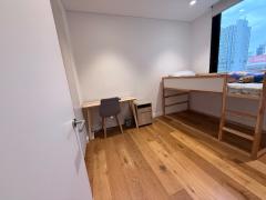 オウンルーム・オウンバスルーム付き、家具完備。ジム・サウナ利用可、インターネット込みで、セキュリティも万全です。