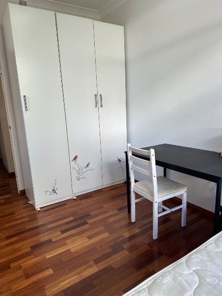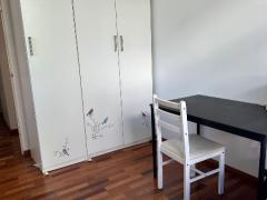 This modern and comfortable bedroom is fully furnished, featuring a wardrobe, fan, personal fridge, ...