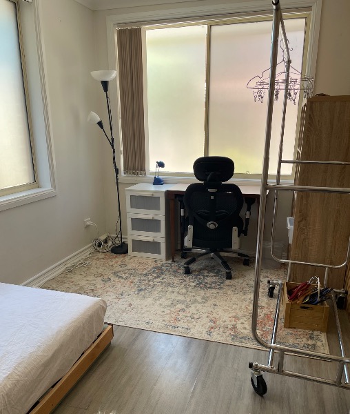 収納、勉強机、扇風機、ベッド、ベッドサイドランプ 冬は電気毛布も備え付けています。こちらのお部屋はエアコンもありますので追加 $20/週でご利用になれます。