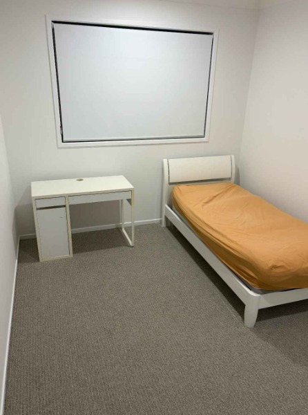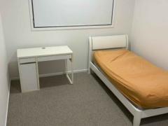 引っ越したばっかなので部屋にはベッドとデスクがあります。ランプとチェアは買い物中です。トイレ3こ、シャワー2こあるのでは私たちは使わないのであなた一人で使います。