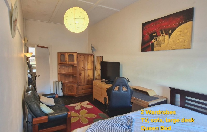お部屋はとても広い個室で、クイーンベッド、デスク、ワードローブ、本棚など家具は全て揃っています。現在は社会人のフラットメイトが住んでおり、落ち着いた住環境です。