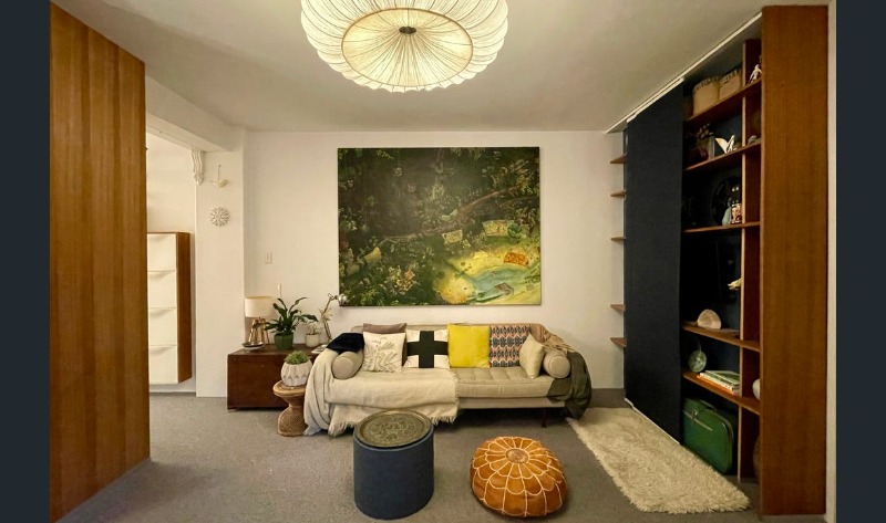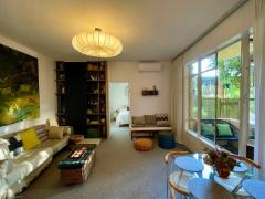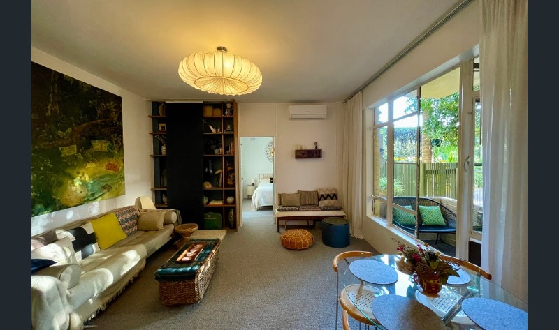 - Spacious, light-filled living and dining area with access through the heritage windows onto a private balcony with garden views, perfect for enjoying fresh air and outdoor relaxation.