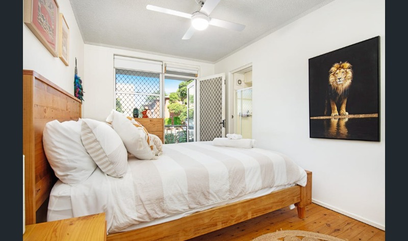 FEATURES: Well presented apartment tastefully furnished throughout features good sized bedroom flows to sun drenched balcony, comfortable living space with air-conditioning, timber floors throughout, modern kitchen with generous cupboard & bench space, sleek ensuite bathroom. access to shared laundry equipped with washing machine & dryer.