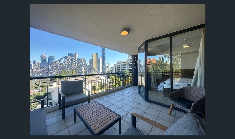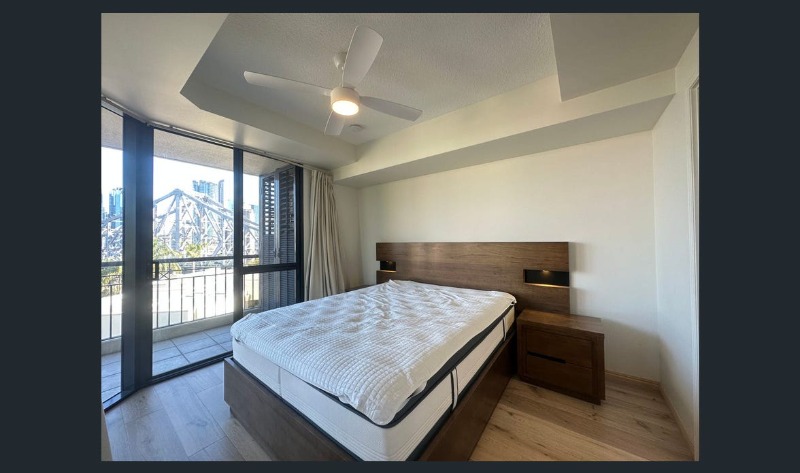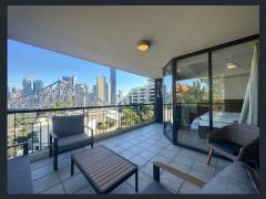 Positioned on the 5th floor of a secure complex, the apartment enjoys sweeping 180° views across the Brisbane River, Story Bridge and city skyline.