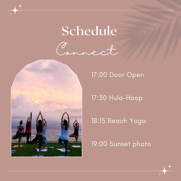 その後、ビーチに移動し45 分間のヨガフローで呼吸と身体と連動していきます。海の音と夕陽の景色を眺めながら、五感を刺激する誘導とヨガのポーズに導かれながら、心と身体のバランスを整えます。自然の中で身も心もゆだねて、ヨガを楽しみましょう✨