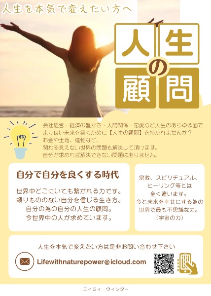 シドニーでシングルマザーとして子育てしながら、「人生顧問」の主催と羅針盤とフーチで経済、恋愛、人間関係、ビジネス等人生における全ての問題の原因と解決方法を教えています。