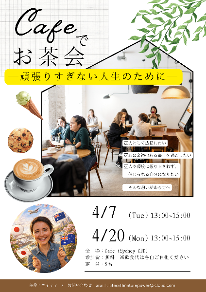 (シドニーシティのカフェ/お茶代は各自ご負担ください)