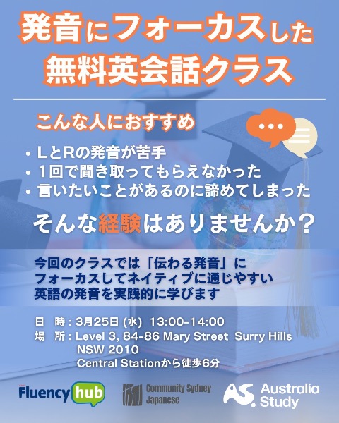 🗓️日時 3月25日(水) 1pm - 2pm (5-10分前にお越し下さい) 詳細、お申し込みはInstagramからお願い致します☺️ IG : community_sydney_japanese