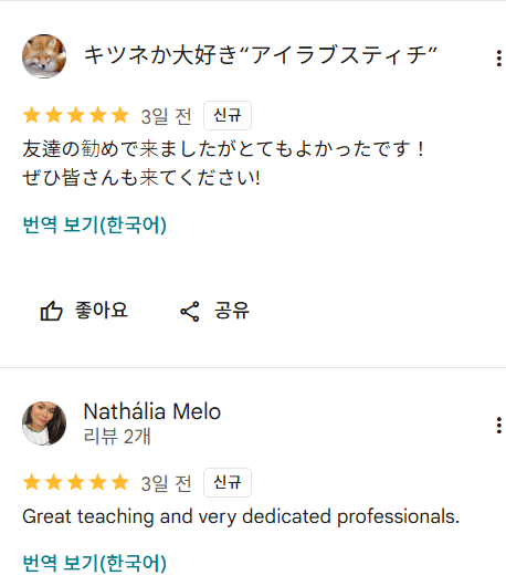 日本をはじめ、韓国・ブラジル・タイなど 多国籍の学生から高評価 をいただいています!