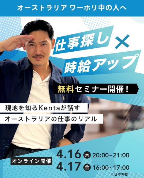オーストラリアにワーホリ中の方を対象にした「仕事探し&時給アップ」のオンラインセミナーを開催します!