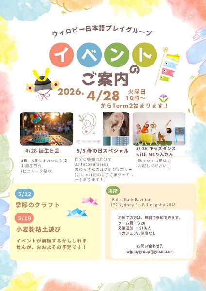 ウィロビージャパニーズプレイグループ ターム2が4月28日よりはじまります!!
