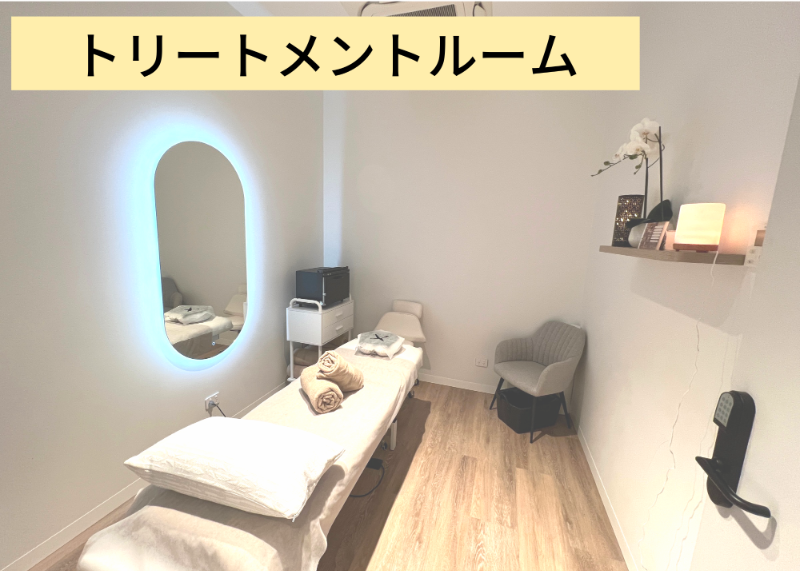 ・完全個室のトリートメントルーム。マッサージテーブルは自動昇降式。