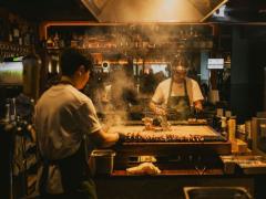 カジュアルでモダンな雰囲気の中で、炭火焼きの焼き鳥や天ぷらを中心に提供するお店です。