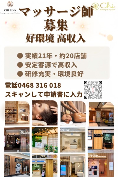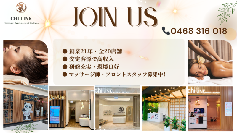 Chi Linkマッサージ鍼灸:マッサージ師求む 好環境 高収入