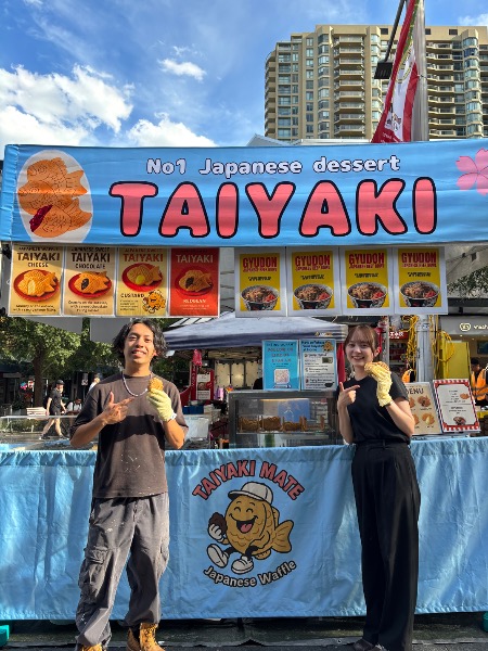 シドニーのマーケットで、たい焼きと牛丼の販売をしています。