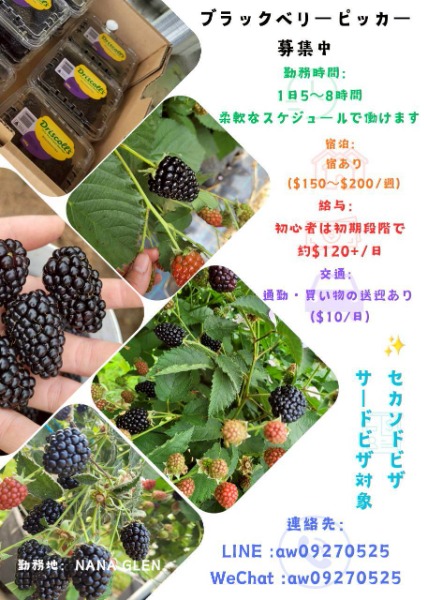 📌 場所:Coffs Harbour(コフスハーバー) 🍇 仕事内容 ・ブルーベリー、ラズベリー、ブラックベリー、ぶどうの収穫 ・経験不要、未経験者OK ・ベテラン & スーパーバイザーが現場で指導...