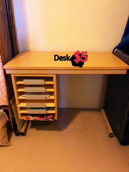 冷蔵庫 $100 洗濯機 $250 6kg 去年10月購入 コーヒーテーブル $ 20 メイクアップテーブル $15 机 $5 each