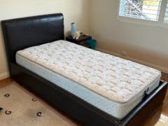 マットレス&収納付き ブラウンレザー製 キングシングルベッド