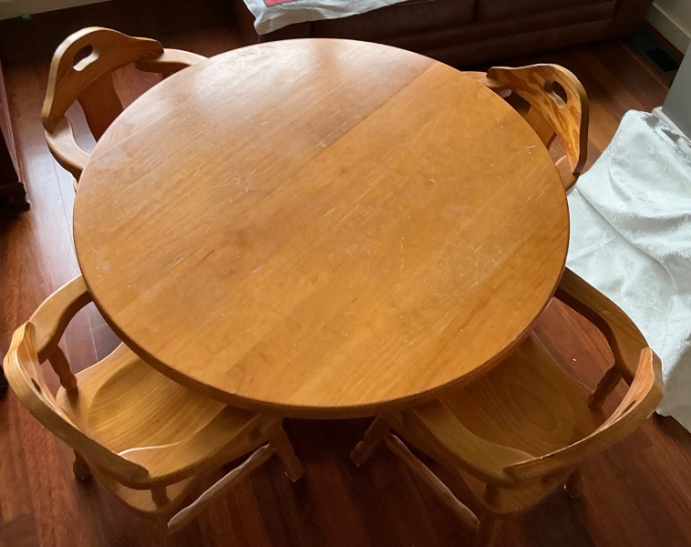 ブルーマウンテンエリアの職人さんに作ってもらった丸いダイニングテーブル です。
