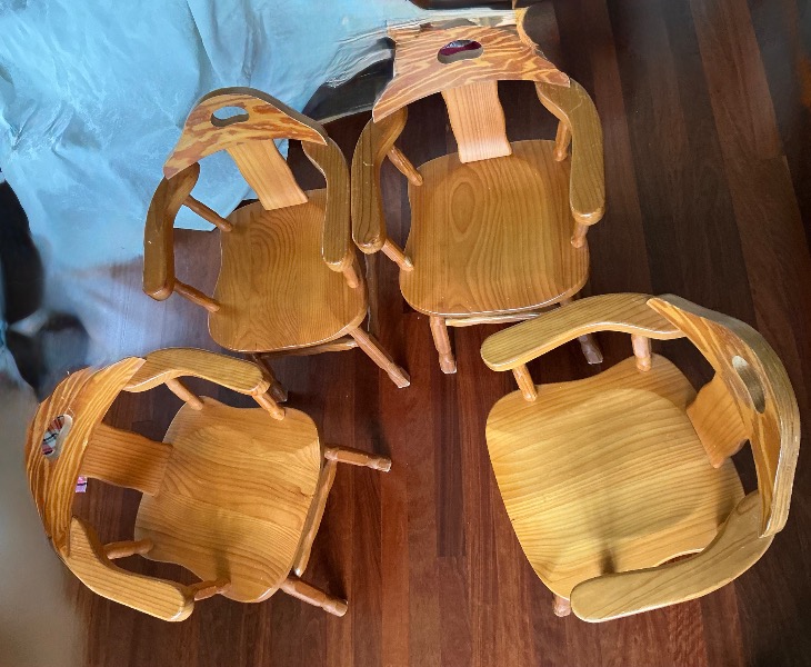 椅子は4脚 で持ち運びしやすい様持つところも作ってもらいました。
