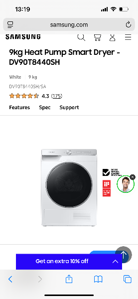 乾燥機 Samsung (DV90T8440SH)