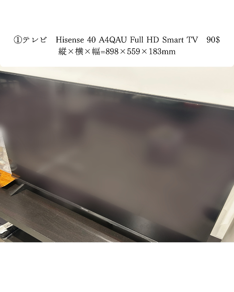 ❌sold out①テレビ Hisense 40 A4QAU Full HD Smart TV 90$