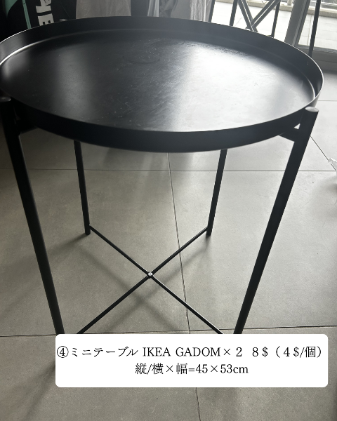 ④ミニテーブル IKEA GADOM×2 8$(4$/個)