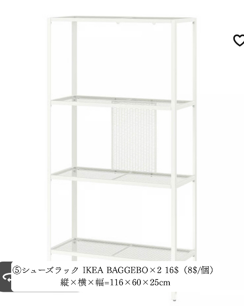 ⑤シューズラック IKEA BAGGEBO×2 16$(8$/個)
