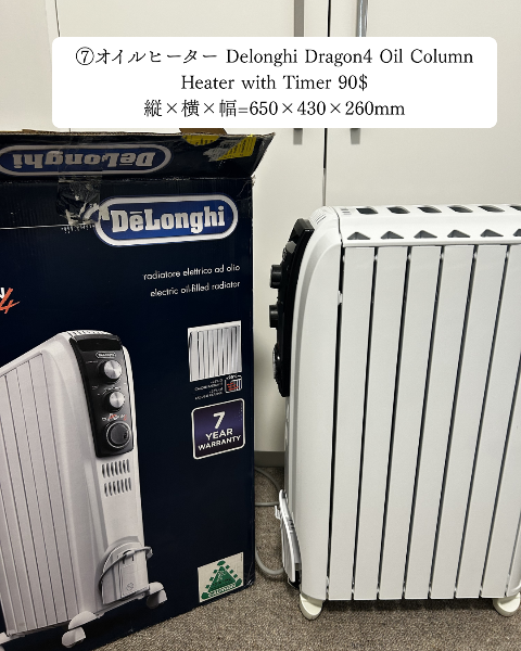 ⑦オイルヒーター Delonghi Dragon4 Oil Column Heater with Timer 90$