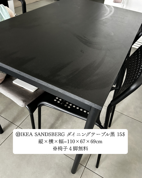 ⑩SANDSBERG ダイニングテーブル黒 15$