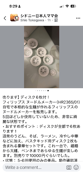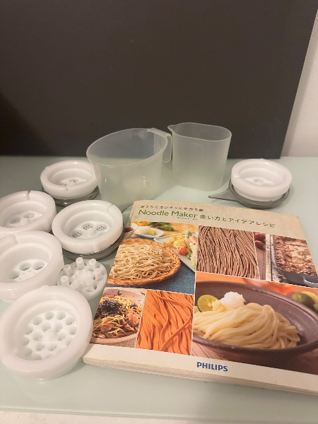 通常のうどん、そば、ラーメン、冷やし中華などに加え、パスタキッド用ディスク2枚も含まれる6枚セットです。これ一台で、細麺から太麺、ペンネまであらゆる生麺が楽しめます。別売りで10000円ぐらいでした。