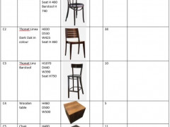 業務用のカフェテーブルトップと椅子がございます。 テーブルトップ(ベースはありません) 横=55cm、縦=70cm コンディションは優良です。ただし、ベースから取り外した際のスクリューの跡は裏側に...