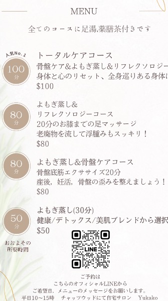 初めまして、チャッツウッド自宅で骨盤美人体操、よもぎ蒸し、リフレクソロジーを行っていますYukakoです。産後のギックリ腰がきっかけではじめた骨盤美人体操は産後のグループレッスン、パーソナルレッスンが人気です♪ よもぎ蒸しを受けた方は、一日中身体も心もポカポカです。リフレクソロジーは、第二の心臓と言われてる足裏をほぐして足も身体もスッキリしますよ。