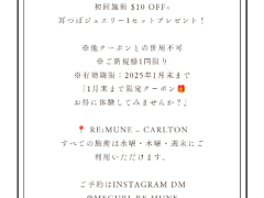初回セッション $10オフ+耳つぼジュエリー1セットプレゼント!1月末まで