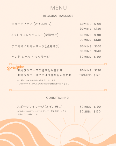 【お好きなコース3種類組み合わせ】120分$180→$170