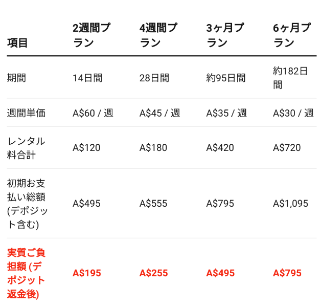 3. デポジット返金:保証金(A$300)は、PC返却後、規約に基づき全額返金いたします。