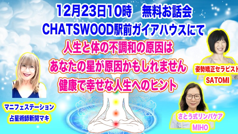 先日も「占星術の12星座と体の関係」「各星座が気をつけるべきポイント」「起こりやすい不調和とその原因」などをテーマに講座を開催しました。今回は講座ではありませんが、参加される方の気づきにつながるお話ができればと思います。ご質問があればお答えしますので、今回は無料でご参加いただけます。
