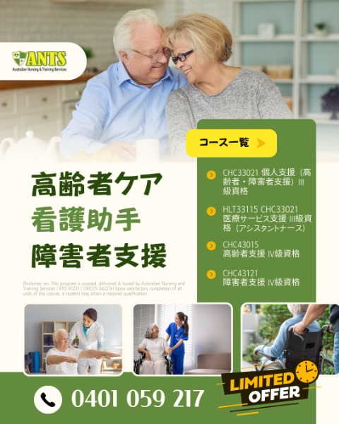 ✅ CHC33021 Certificate III in Individual Support(高齢者・障がい者ケア)
